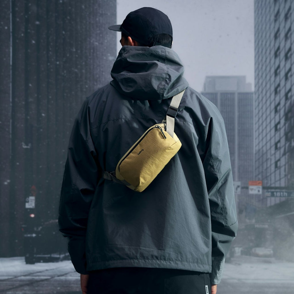 We use fabrics from recycled sources such as plastic PET bottles, industrial nylon offcuts and fishing nets. (See composition.)